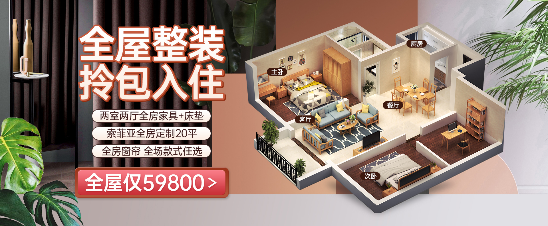 提供與家居風格配套的窗簾、沙發、茶